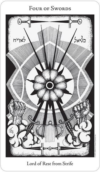 I raffinati disegni in bianco e nero di Godfrey Dowson enfatizzano gli attributi astrologici della Golden Dawn con ulteriori elementi sefirotici, angelici, geomantici, numerici e cabalistici. Tutte le 78 carte presentano un livello di dettaglio squisito che ne evidenzia il potente simbolismo.